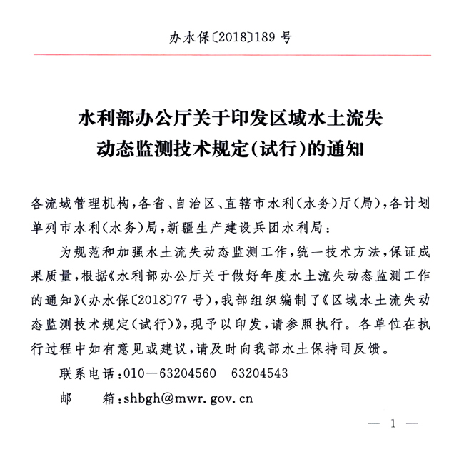 水利部辦公廳關于印發(fā)區(qū)域水土流失動態(tài)監(jiān)測技術規(guī)定(試行)的通知